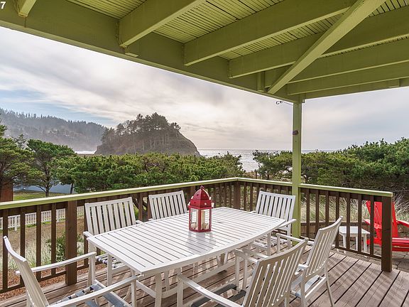 Truly magical beach home in the heart of popular Neskowin Village. A visual feast awaits you from the magnificent views of Proposal Rock and the Pacific Ocean to the amazing interior which is definitely personality with a floor plan! Timeless character and warmth adapted to a modern life style is defined by the chef's kitchen, beach inspired living spaces, beautifully appointed bedrooms with a main level master suite and meticulous attention to design and detail. 2 Levels of ocean view decks and an enchanting coastal garden. Adjacent to the beach access. Offered fully furnished. Perfect as a full time home, or use as a vacation rental income property.