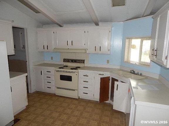 Affordable home with .15 acre lot included. House is updated with vinyl windows. Vaulted ceilings in large open living room. Oversized one car garage with shed. Property is sold in as is condition.