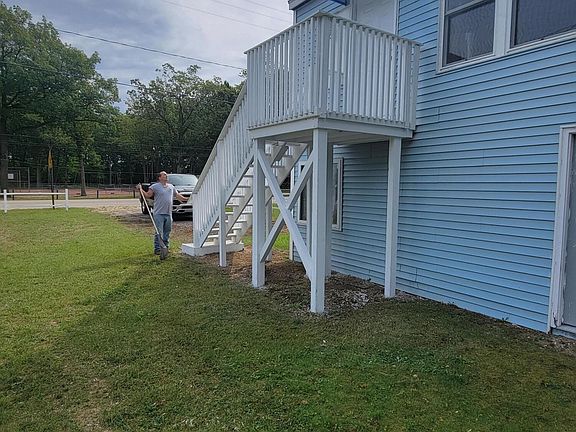 Lower floor; new water-proof flooring, lighting, Large shower with removable seat, toilet cabinet/sink, kitchen island, sink, butcher-block counters, cabinets, built-in breakfast nook recessed refrigerator area 2 large bedrooms interior solid doors plumbing key lock deadbolted door divider large double lot just under an acre finished garage storage buildings with power on extra lot