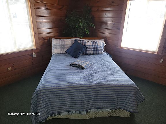 Upper floor; fully wrapped shower over tub, large eat-in kitchen, tongue and groove knotty pine interior, balcony, built-in dressers and storage area. 3 bedrooms, sitting room