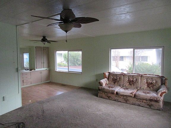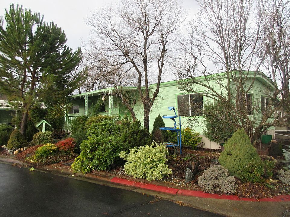 Redwoods mobile home park. Nice corner space with lots of plants and trees. Covered front and back porch and carport, newer duel pane vinyl windows and wheel chair ramp. Needs updating and TLC.
