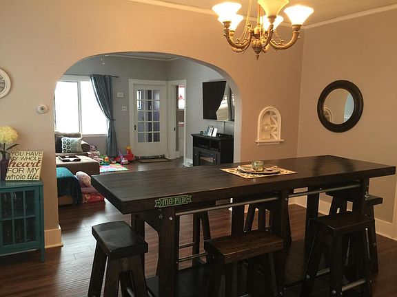 Up for offer is this nicely updated 3 bedroom home. This bungalow has a formal dining right off the fresh looking kitchen. New flooring and paint upstairs. Home has a modern bathroom with classical looks. Large 2 stall garage big enough for most trucks with space for work tables. This home is out of the flood zone.