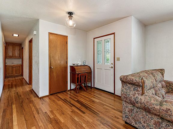 Don't miss seeing this Country Charmer. Featuring a 3 bedroom, 2 bath with 1,446 sf. Living room with large picture window and brick fireplace. Kitchen with oak cabinets, snack bar and a slider to the covered patio. Em-suite bedroom with tile shower. Laundry is inside. Detached 2 car garage/shop. Nested on 1.70 acres. Great location; convenient to town and shopping. Recent well flow at 7.7 GPM. Put this home on your list to show.