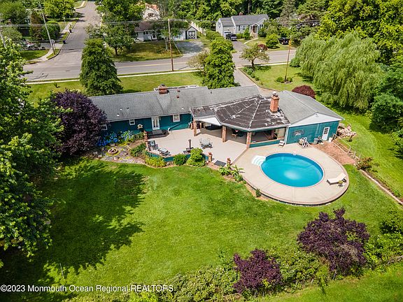 This 3 Bedroom, 2 Bath Ranch is situated on an expansive 179x207 lot in Oceanport. Fantastic outdoor oasis with a pool, large backyard, and a heated Lanai + a fireplace to be used for all seasons! Upon entering, you are greeted with gleaming hardwood floors in the living room, dining room, den with a gas fireplace, and all 3 bedrooms. Kitchen features a large center island and flows into the dining room. Laundry /Pantry with crawl space access off of the kitchen. Oversized 2 car garage which is attached to the Lanai for easy access. Don't miss out on this wonderful opportunity to call this place home. Property is being sold in completely as-is condition & in a flood zone. Buyer responsible for town inspections.