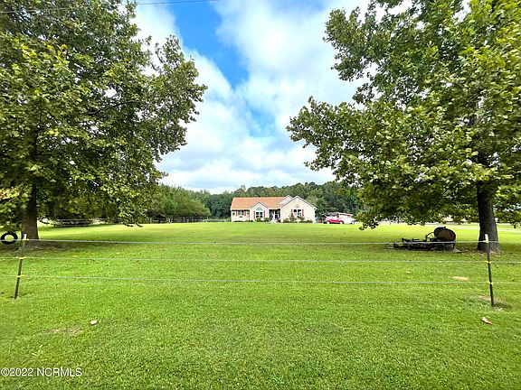 Comfortable spacious home in a wonderful community where you can materialize your country-living dream while being close to the town of Burgaw (about 9 miles). This house sits on a large beautifully cleared lot (2.51 acre according to county records), it features open living space with a gas fireplace, a large 2-car garage, three bedrooms and two full bathrooms; however, for full disclosure purposes, one of the bedrooms does not have a closet. Original wooden floors that could be refinished for a luxurious look or kept rustic for a cabin-like feel. Downtown Wilmington is about 21 miles away (about a 26 minute drive). Horses are not only allowed, but encouraged since there is already a horse barn in place and a large electric fence (1 horse per acre, as per recorded restrictions). Small rear deck, chicken wire fence, and garden area are found on the rear side closest to the house. The house has been a rental for several years, and it is being offered for sale ''As Is.'' It will need some TLC to make it your own cozy home. 9/24 Update: Tenant owns a portion of the electric fence and will removing upon lease termination which is set for 10/31/2022 Flooring is wood on living area and kitchen area, but laminate on hall floor and bedrooms.