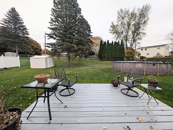 laundry area. Three good sized bedrooms with ample closet space too. The main bedroom has a half bath for convenience. A backyard shed offers even more storage and the expansive driveway/parking pad offers plenty of room for boat or RV parking. New sump pump in 2023 and back up in 2024. Water heater, dishwasher, oven/range, microwave, awning and above ground pool in 2024, roof 2021, furnace & A/C 2018, updated 200 amp electric and a generator hook up. Conveniently located in the Churchville Chili school district and only minutes away from Davis Park, Wegmans, Aldi, Target, the Airport and so much more.