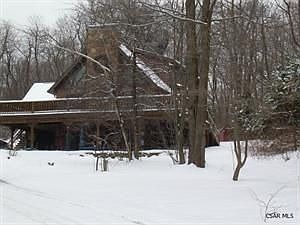 Don't miss this mountain retreat situated on 3.3 acres! Amenities of this modified A-Frame include stone fireplace, cathedral/beamed ceiling, cherry kitchen/solid surface counters, 1st floor master bedroom/adjoining dressing room, additional 1st floor bedroom, full bath, and wrap-around deck. 2nd floor loft bedroom includes large walk-in closet, 1/2 bath, jetted tub, and patio door leading to balcony. Lower level includes family room/woodburner, kitchen/bar area and full bath. 3 bay garage/coal stoker and inground pool for only $269,900!!!