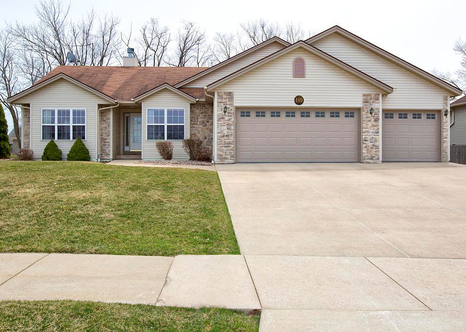 Move right into this impeccable 3 bedroom, 2.5 bath ranch with a 3.5 car garage! This home features a step saving first floor laundry room, see through gas fireplace (can be easily converted to wood burning) between great room and dining area. Large master with WIC, master bath offers double sink vanity, shower over tub & shower stall. Spacious kitchen with loads of counter space, all appliances included and glass doors leading to patio. You'll love to entertain in the lower level with half bath & wet bar! Home warranty for piece of mind! Near schools, parks & entertainment! View the video!