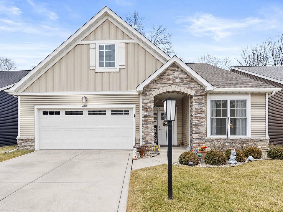 Exquisite 3-Bedroom Patio Home with Premium Finishes This 3-bedroom retreat features an open concept design that creates a seamless flow from the gourmet kitchen to the inviting living spaces, perfect for both entertaining and everyday life. There are three spacious bedrooms with ample closet space, a custom coffee/wine bar, enclosed back porch that looks out to a scenic tree lined yard, heated garage with workbench, and leaf filter gutter guards.Enjoy the freedom of a maintenance-free lifestyle which includes snow removal and complete yard maintenance.Don't miss this opportunity to embrace luxurious, low-maintenance living in a home designed for both comfort and style. Seller is offering $3500 seller concessions