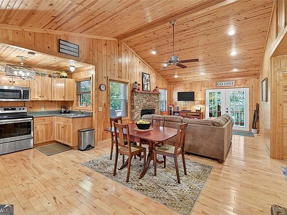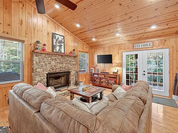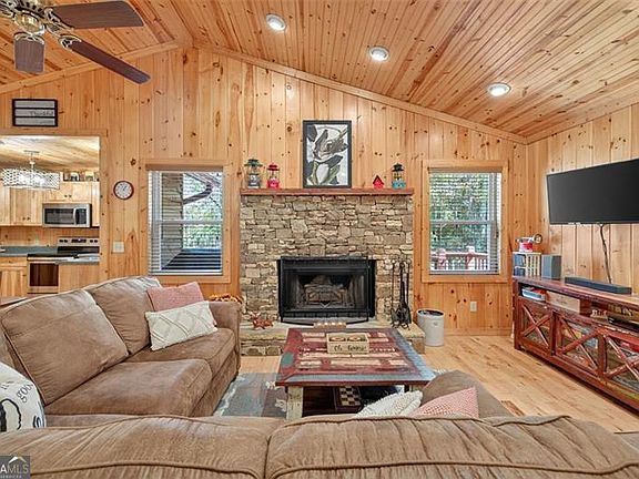 Nestled in the heart of the Northeast Georgia mountains, this adorable 2-bedroom, 2-bath cabin is the perfect blend of rustic charm and modern comfort. Whether you're searching for a full-time mountain home or a peaceful weekend escape, this property will capture your heart from the moment you arrive. Step inside to discover a warm wood interior that offers timeless beauty and zero interior maintenance. The inviting stone fireplace sets the tone for cozy winter evenings, while natural light fills the open living space with a welcoming glow. But what truly sets this home apart is its backyard paradise - it backs up to Tiger Creek, a serene mountain stream that provides a soothing soundtrack to your days and nights. The back porch is a favorite gathering spot for morning coffee, evening wine, and watching hummingbirds dance while the creek flows just below. It's a setting that photos can't quite capture - you simply have to experience it. Currently operating as a successful short-term rental, this property has been meticulously maintained and thoughtfully updated to ensure comfort and reliability for owners and guests alike. Recent improvements include: 2022: New HVAC, new hot water tank, metal roof screws replaced and ridge vent expanded, weathered siding replaced, and septic tank pumped. 2024: Home professionally stained and new well pump installed. Crawlspace features an Aprilaire dehumidifier for added protection and peace of mind. A covered carport with storage adds convenience and functionality to this charming mountain getaway. Whether you're dreaming of lazy creekside mornings, cozy fireside nights, or investing in a proven income-producing property, 489 Glassy Orchard Road offers it all - wrapped in the beauty and tranquility of Tiger, Georgia. (Home is sold by owner/agent.)