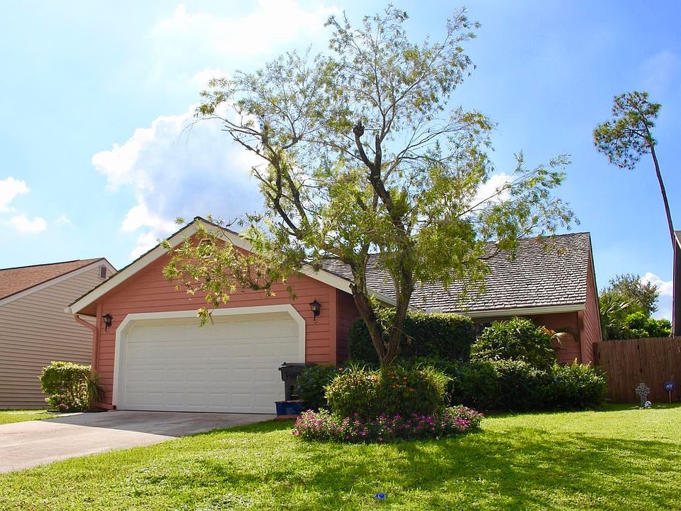 Charming, well maintained 3/2 with two car garage family home in the heart of Wellington!Large screened in patio with brick deck and additional access from side yard, surrounded by opulent landscape excellent for leisure and/or entertaining with no neighbors on the back..! Beautiful cedar vaulted ceilings and skylights for ample natural lightning. Home was recently painted, has a new garage door, newer Samsung appliances, granite countertops and accordion hurricane shutters. Inviting french doors in main room and oversized master bedroom with patio access. Completely fenced in and conveniently located on a placid street.