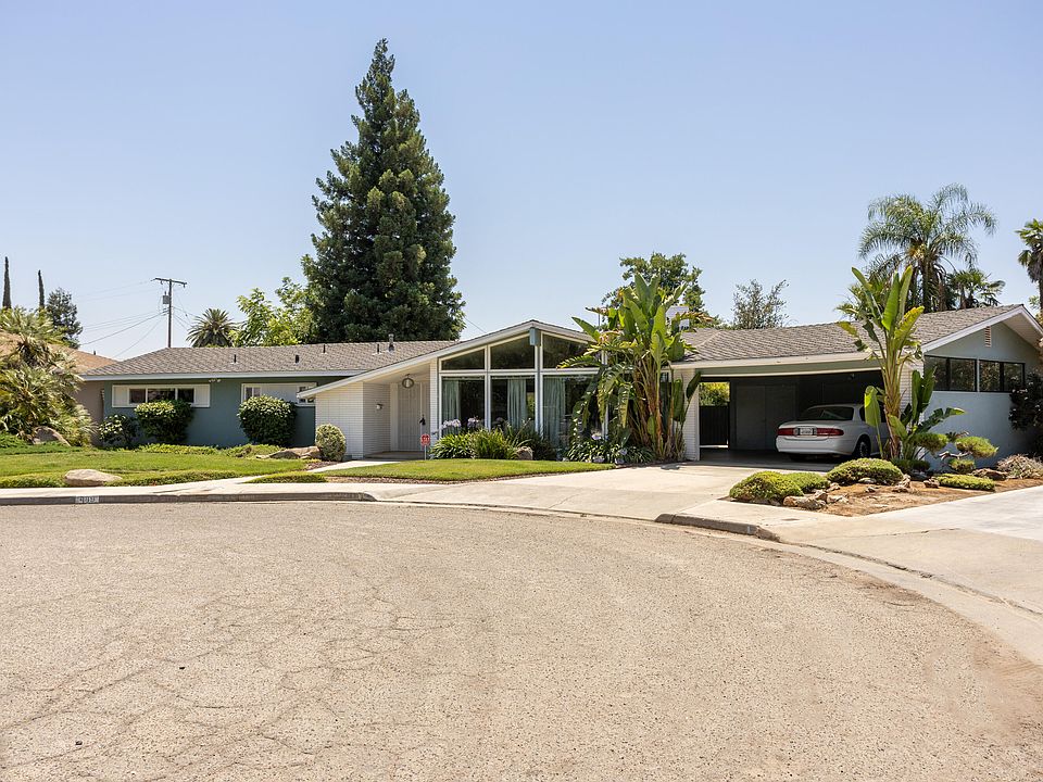 Custom built Mid-Century modern home situated in an established, quiet neighborhood. This property has been beautifully updated and remodeled with a complete kitchen, guest bathroom remodel, and wood flooring throughout the main living space. The floor plan is very open and bright. The backyard is also fabulous with the vaulted covered patio, large open lawn area and mature landscape. This is definitely a place you can call home! New hvac & dishwasher in the last 2 years