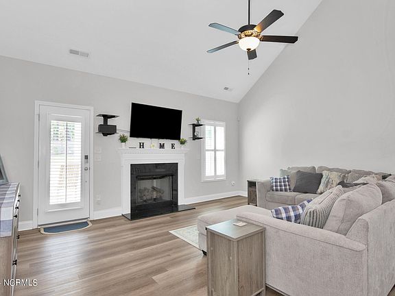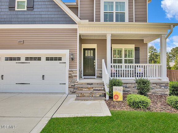 4 bedroom 2.5 bath home located in desirable Gretchen Pines neighborhood with a gated entrance and on over a half acre lot. House features a beautiful open floor plan with a kitchen chefs would die for! Beautiful granite counters, stainless steel appliances, white cabinets, vaulted ceiling in living room, master bedroom downstairs with double vanity and walk in closet, additional bedrooms have walk in closets. Plantation shutters throughout, extra parking pad, fenced in back yard, two covered porches, large loft upstairs. 10 minute drive to Moore Regional Hospital. Smart thermostat and extra storage and shelving installed in the garage. This beauty wont last long! *Photos have been enhanced with grass replacement but the sellers have laid seed and watered.