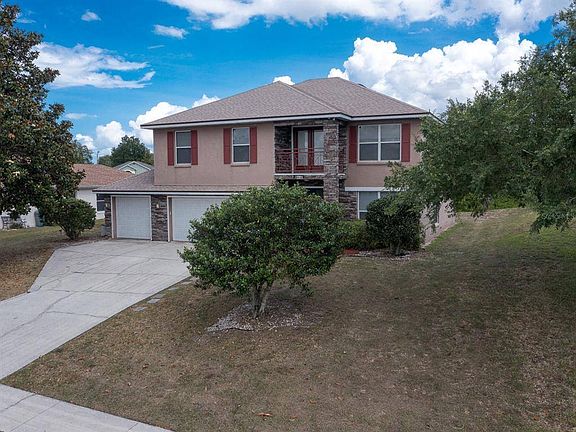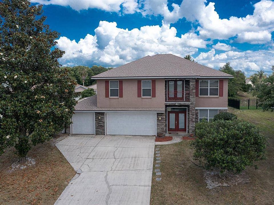 Spacious and beautiful, stone front home in the highly sought after community of Saxon Ridge. 4 bedrooms, 3 full baths with bonus space on 2nd floor; separate room on 1st floor can double as an office, den or guest room. Relax anytime, bug-free, in your screened-in, covered porch or head on over to the community pool for a refreshing swim. Enjoy gorgeous views at sunset from your Master Bedroom balcony of Trout Lake right across the street. The Master Bathroom offers a jetted tub with huge separate walk-in shower and 3 closets! Tons more storage throughout the entire house...huge kitchen pantry and ample cabinet space in kitchen with pull out drawers and granite counters, huge linen closet, extra storage space under the stairs and separate storage shed outside. The insulated and climate controlled three car garage has been partially converted into a workshop. Google Nest Home Automation System included, which allows you to control lights, thermostat, locks and more via your smartphone/tablet/computer. Conveniently located less than one mile to I-4 and just minutes to shopping, restaurants and medical facilities. You won't want to miss the opportunity to own this incredible home! Check out the Matterport link listed in the virtual tour.