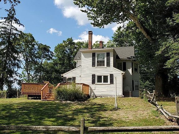 Unique opportunity to live on Rancocas Creek in a home built in 1830! The property sits on 2.52 acres with a pole barn and a separate 2 car garage/workshop. The first floor has 9 ft ceilings with family & dining rooms. The eat-in kitchen features electric stove and a wood burning stove. Main floor also has a bathroom off the kitchen and a butler's pantry. There is a wrap around deck to enjoy the views of the creek. There are 3 bedrooms upstairs with a hall bathroom. On the 3rd floor are 2 small bonus rooms. Laundry is located in the basement.