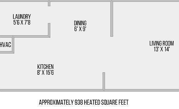 - Total interior livable area: 938 sqft
