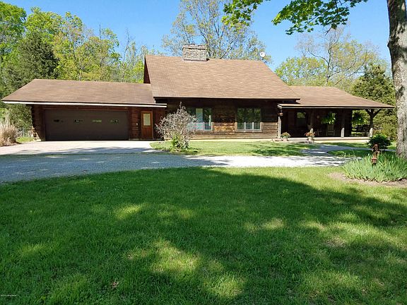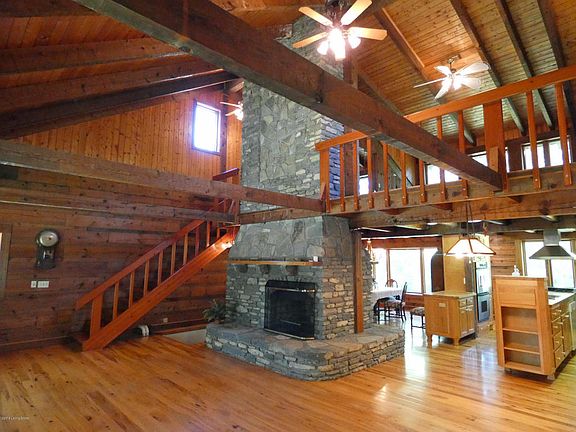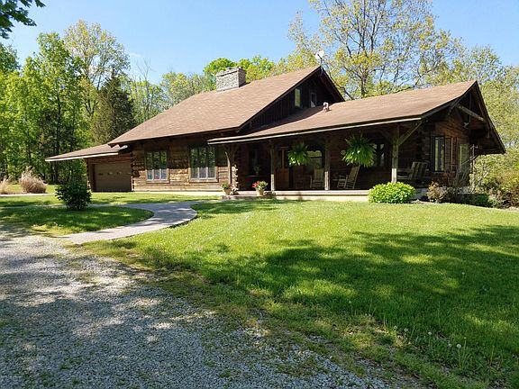 Unique and Amazing Property Alert!!! This 40 acre wooded wonderland is just 6 minutes from I71 in Pendleton. Spectacular Log cabin with shagbark hickory HW floors harvested from the property, Massive wood burning FPs! Open floor plan, High end Appliances, 1st Floor master suite with its own Laundry and private balcony. Upstairs boasts a massive Bedroom/loft with Full Bath and roomy closets; Walkout Lower level partially finished includes Stone FP and full bath--as well as a 2nd 2-car garage and you can use as a 2nd living quarters..Breathtaking views from every room! Don't miss the best ''man cave'' ever. A 100x24 Outbuilding outfitted with everything a car/boat enthusiast-whether by trade or hobby-could ever imagine. 3 ton &1 ton overhead lifts span the bldg. 2 Huge air compressors with. lines running throughout the entire building, 3 large drive-thru doors on either end and 1 side, spray foam insulated, wood burning stove.This huge outbuilding sits on rebar enforced concrete and boasts 24 x 150 Lean to across the back with lighting and outlets also with rebar enforced concrete floor.There is also a separate fuel shed as seller kept jet fuel for his racing boat.Water spigots placed strategically around property for easy access. This amazing property is a must see--for the hunter, nature lover, car and boat enthusiasts make an appointment to Fall In Love!!