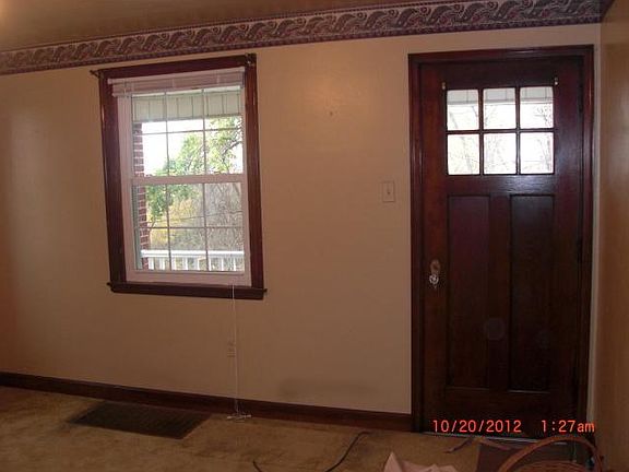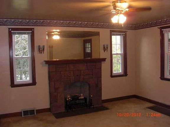 This One and a half story home features Brick exterior, 2 car Detached Garage, Vinyl and Wall to Wall Carpet floors, 1 fireplace, Oil and Forced Air heating, Central Air cooling, 3 bedrooms, 1 full bathroom, Electric Stove, Multi-Pane Windows, Refrigerator, Screens.