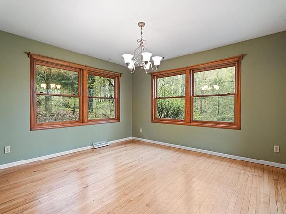 Your private oasis in the woods, just 15 minutes from downtown Ithaca and Cornell. The wrap-around porch of this beautiful home leads to a private back deck in the secluded back yard. Enjoy the warmth of the gas fire place in the open-concept living room. The bright, sun-filled dining room will be the center of many get-togethers with friends and family. The main level features 2 bedrooms (office space?), and a full bathroom. Upstairs has another two bedrooms and a full bath. This 1400+ square foot home feels larger because of the storage space the house offers. The basement has tall ceilings, and is currently set up as a workout space and laundry room. Come admire the views of the valley from your new treehouse of happiness! Open House: Saturday, May 6, 3pm - 4:30pm