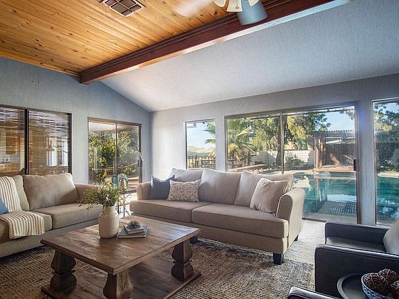 You do not have to live in the mountains to get a great scenic view; this house is a unique home in a unique location. Scenic view of mountains and city lights from both Family & Living Room and each has a fireplace for that romantic evening. You will enjoy time spent in your home with the magnificent scenery but will have lots of fun entertaining on 1800 sq. ft. of multi level decking that expands from the family room and around both Spa and the 18x36 in ground Swimming Pool. Home boast Family Room, Living Room, Kitchen, Breakfast Nook, Dining Room, Laundry Room, 3 Bedrooms, 2-1/2 Baths. Owner will be leaving the Refrigerator, Wine Cooler, Antique Picnic Table and Window Coverings. With almost an acre you also get fruit trees and room for RV Parking. You will appreciate the well maintained landscaping and circular entrance drive. A home you must see! Joan Gillham ID# 01842845 Five Star Realty (559) 527-1500