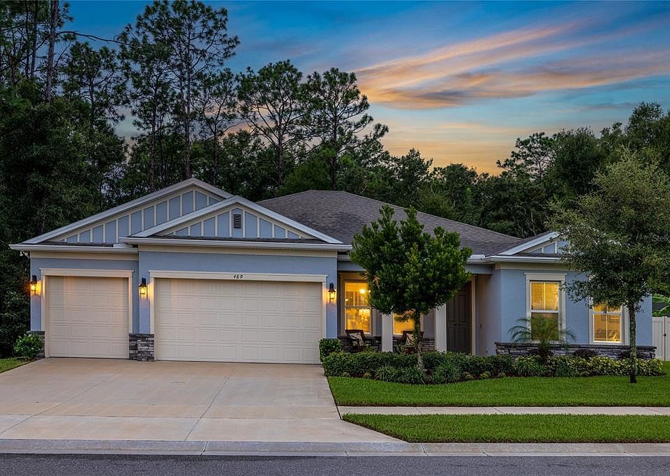 GORGEOUS, MOVE IN READY 4 Bedroom, 3 Bath, 3 Car Garage on an oversized lot (.30 acre) The lot backs up to a conservation, wooded area as well on one side of the home. No rear neighbors! The home is like new (2021) without waiting on a build. It has lots of upgrades including: Tray Ceilings in the Dining Room, Living Room, Primary Bedroom, Family Room and Entry Way. Walking into this home feels grand with its' 10 Foot Ceilings, 8 Foot Doors and large room sizes. There are beautiful Quartz counter tops in the kitchen and bathrooms. All of the bedrooms, living room, family room and lanai are all equipped with ceiling fans. The front bedroom and bathroom could be a mini suite. The family room, 2 bedrooms and bathroom are separated from the rest of the home by a barn door. This is perfect when entertaining family or guests on visits giving them their own privacy. The master suite and bathroom are both oversized with 2 walk in closets as well as a linen closet. There is also a soaking tub with a separate shower in the bathroom. On those chilly, Florida nights you can sit and relax in front of your electric fireplace. The large lanai is screened in with a pool bath door into the guest bathroom. Beyond the lanai is an oversized paver patio. The back yard is completely fenced on the sides with vinyl fencing and the rear is fenced in aluminum so you can view the private woods behind the home. This is the perfect family and entertaining home! Location is everything! This home is located within minutes from the Historic Downtown DeLand area and Stetson as well as less than a 30 minute drive to The Daytona Beach International Speedway, Daytona and New Smyrna beaches, tons of shopping restaurants and entertainment. If you want to head to Orlando, you are still within less than a 45 minute drive to major shopping, the Central Florida attractions and Mickey Mouse! (Owner is licensed Florida Real Estate Agent.)