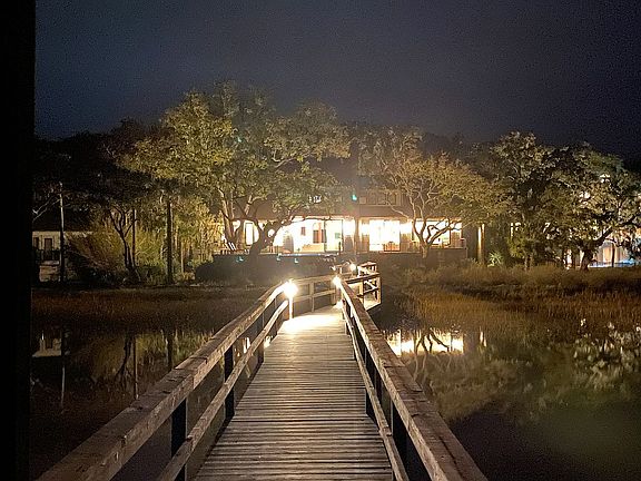 Nestled within a quiet neighborhood on a cul-de-sac street and a large homesite for added privacy; this stunning home offers it all; a graceful interior, amazing marsh views, abundant outdoor living, and a private dock with direct river access. Convenient proximity to the Cougar Point Golf Course, Night Heron Park, and the Marsh View Tower allow residents unlimited opportunities to enjoy the social and sporting abundance only Kiawah provides. Glorious sunset views over Mingo Point and the Kiawah River add to this extraordinary location. The front exterior's handsome bullnose brick stairway with wrought iron railings rise to a barrel ceilinged covered portico overlooking the meticulously landscaped front yard featuring lush Lowcountry foliage; magnolias, palmettos, and live oaks. Oversized glass double doors welcome you inside the foyer which features towering cathedral ceilings and ceramic tiled flooring. The wonderful flow of this predominantly one-level floor plan separate the master suite and guest bedrooms from the home's main living and entertaining spaces. Centrally situated, the entrance foyer leads to the second level stairway, as well as both wings of the home. Complete with a wood burning fireplace, the living room comprises of tall ceilings, neutral ceramic tile flooring, and two walls of oversized picture windows. Sliding glass doors beckon outside to the wrap-around deck where panoramic river views and amazing Kiawah sunsets are relished. Perfect for year-round entertaining, the warm and inviting study offers gorgeous views, a wood burning fireplace with brick surround and hearth, handsome trims and moldings, tall ceilings, built-in library shelving, and direct outdoor access. At the heart of the home, the warm and expansive kitchen comes equipped with everything needed to create family meals and memories. The kitchen features double ovens, side-by-side refrigerator and freezer, abundant cabinetry and ample countertops, clever storage spaces, and a built-in wine rack. The large island with a cooktop offers casual bar seating. Off of the kitchen, the sunny breakfast room offers plenty of family dining space with vaulted ceilings, floor-to-ceiling windows and glass doors that give way to a capacious screened in porch. In contrast with the breakfast room, on the other side of the kitchen lies the formal dining room. In addition to the cathedral ceilings, the delightful views make this room ideal for hosting and entertaining. In addition to the home's four guest bedrooms, the first floor master suite offers a quiet retreat with elegant oversized picture windows, vaulted ceilings, stunning views, and direct access to the back deck. The master suite offers plenty of seating, a wood burning fireplace and his-and-her closets. A private en suite with double vanities, a walk-in shower, and a separate soaking tub contribute to the suite's relaxing atmosphere. Additional features include an oversized second floor bedroom which can double as a game or family room, with stunning river views, and a two car garage.