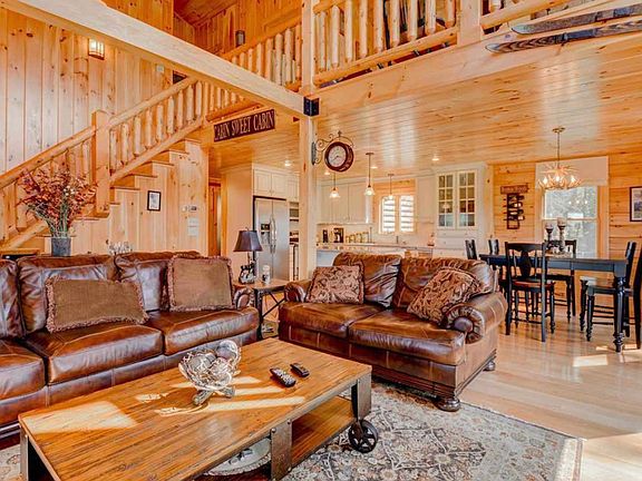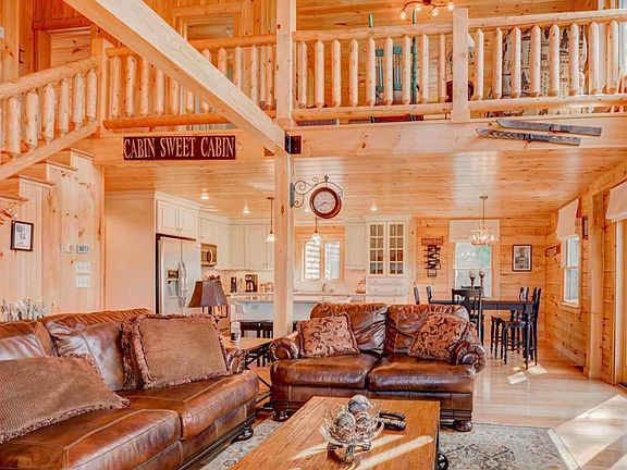 Treat yourself to this stunning log home in scenic Whitefield, NH, featuring AC, a fire pit, and four bedrooms. Perched on a hillside surrounded by serene woods, this Coventry Log home is modern, classy, and comfortable. The main level boasts a beautiful kitchen with granite countertops and high-end stainless steel appliances, and the open-concept floor plan with vaulted ceiling centers around a convenient gas fireplace and comfortable leather couches. The warmth of this rustic and modern home gives you everything you crave for a mountain vacation, yet it is still close to all of northern New Hampshire's top attractions, from Santa's Village to the Cog Rail, Franconia Notch State Park, and the ski slopes of Bretton Woods and Cannon. The kitchen is warm, bright, and fully stocked for all your cooking needs, offering stainless steel appliances, granite countertops, a Keurig coffee maker, and a cozy breakfast bar that seats three. The sunny open-concept dining and living area features a large dining table that seats six and comfortable leather furniture surrounding a stone gas fireplace, with views and access to the back deck for additional outdoor dining. The lower level offers a second living and entertaining area with a TV, another stone fireplace, and a Ping-Pong table, adding to the fun. We offer discounted tickets to the world-famous Cog Railway and 25 pool and gym passes at the fabulous Mountain View Grand Resort and Spa. Parking is limited to four vehicles. A pet fee of $100 per pet per stay applies for pet-friendly units. This home is located in Whitefield, a scenic Northern New England town nestled in the White Mountains, close to all major White Mountains attractions. Bretton Woods, New Hampshire's largest ski resort, is about 20 minutes away, offering a 4-season destination with activities for all ages. The house is centrally located just outside of Whitefield, less than 10 minutes from the historic Mountain View Grand hotel, about 20 minutes from Bretton Woods, 30 minutes from Cannon, and 45 minutes from Wildcat, and 10 minutes from Santa's Village. It's also less than 10 minutes to Lancaster, providing lots of options for grocery shopping nearby. Check-in is any time after 4 PM, and check-out is at 11 AM. Unauthorized early arrivals or late checkouts are subject to a $100 per hour fee. No unauthorized guests or pets are allowed, and unauthorized pets or guests are subject to a $300 fee and immediate termination of your stay with no refunds. Absolutely no parties without express authorization. Quiet hours are from 10 PM to 8 AM, and noise levels should be kept low during the day. No smoking inside the unit, with a $250 fee for violation. We are in Bear Country, so no trash or food is to be left outside at any time, with a $100 fee for violations. Some homes are equipped with exterior cameras for security purposes. Rates are based on standard occupancy of two guests per bedroom, with additional guests incurring a $25 per person nightly surcharge. Children under the age of two do not count toward occupancy. Includes free high-speed Wi-Fi and cable TV. A laptop computer is not included.
