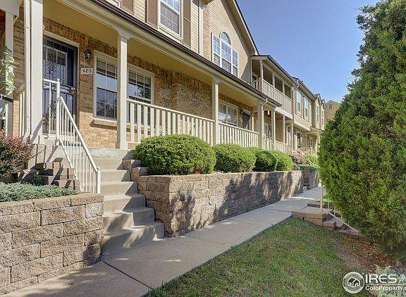 One of the BEST lot locations in Hunter's Ridge: Lower patio and upper deck offers GREAT SPACE to relax... opens to the west towards a great tree and grass covered hill that provides privacy, peace and quiet & afternoon shade. Come see this beautifully updated end unit townhome with brand new flooring, light fixtures, fresh paint, stainless steel appliances, and more! This unit features a double master with two bedrooms upstairs with their own attached bathrooms. Unfinished basement offers included LG washer and dryer, great storage space and/or future expansion. Reserved parking space directly in front of unit and the complex has ample visitor parking. Located just steps from the Dash bus line that runs to CU Boulder (less than 15 minute drive), and is walking distance to several trails, parks, and restaurants. You can also walk or bike the mile to all DT Louisville has to offer! This house has been well taken care of and it shows.