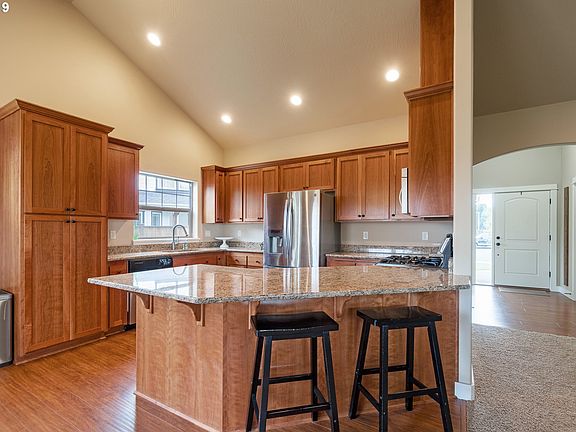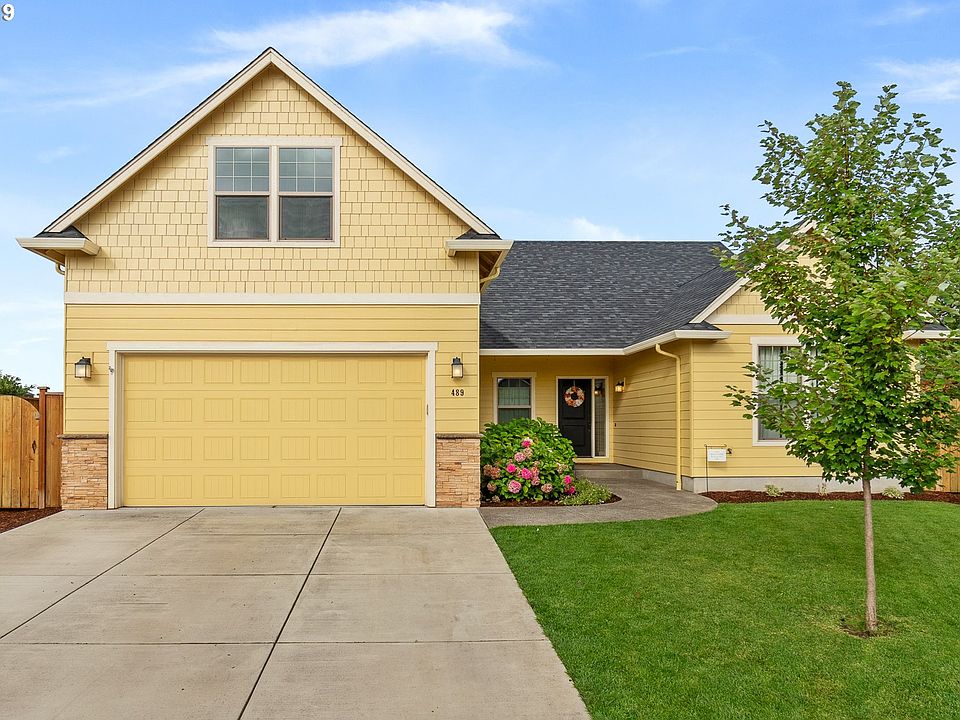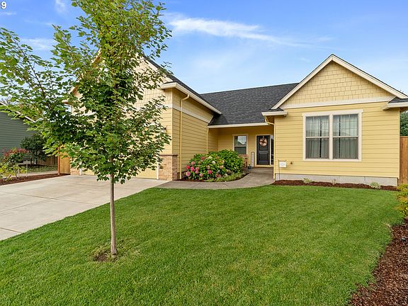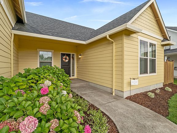 This 2014 Bruce Wiechert built home in Junction City has it all. 1,830 sqft 3 bed 2 bath with den/office main level living and a 308 sqft bonus room over garage. It is an extremely versatile floor plan. Beautiful slab granite counters in kitchen with breakfast bar and dining area that opens to the living room. Great separation of space with master on south side of home and other bedrooms on the north. Fresh, cheerful exterior paint!