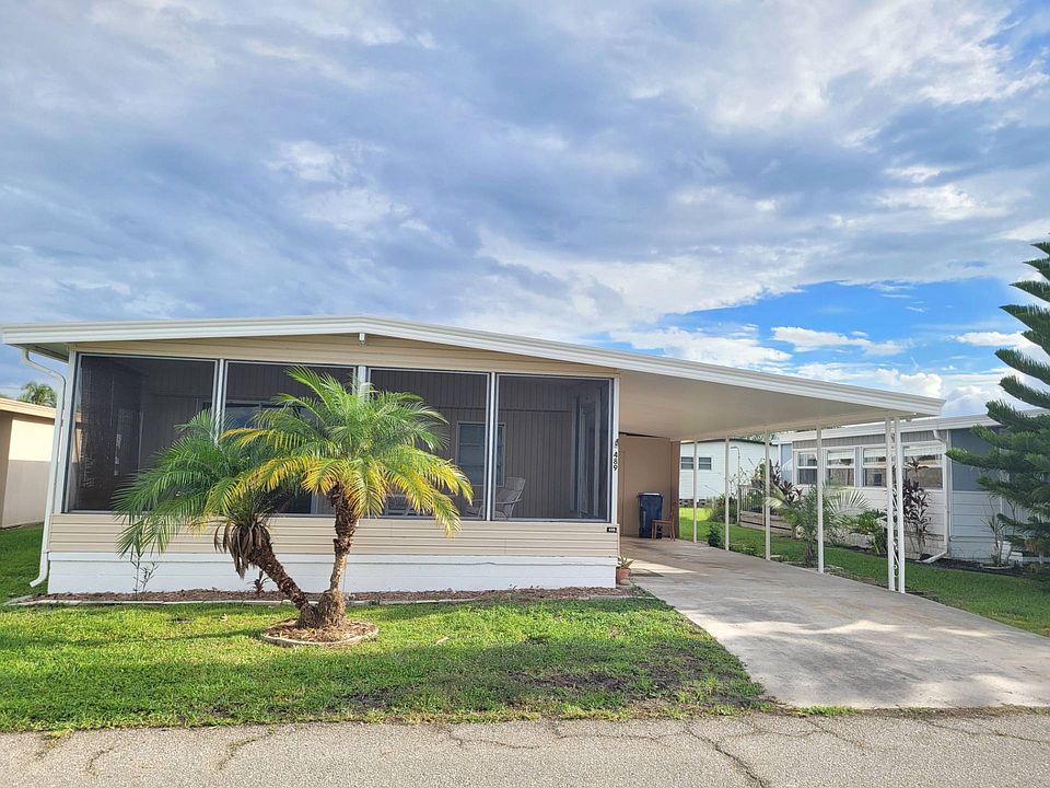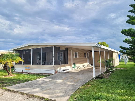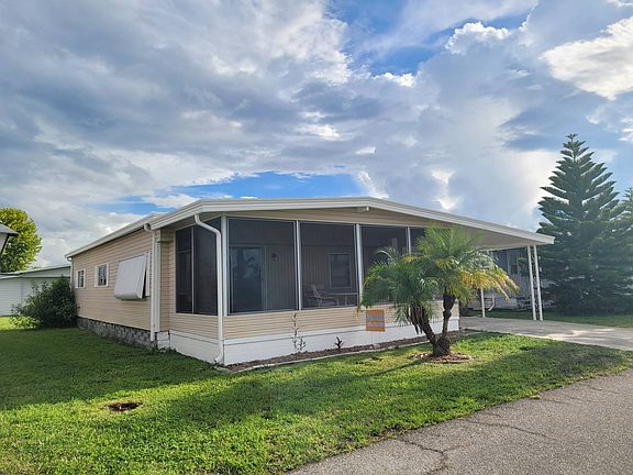 Named BEST Retirement Community six years in a row by the Herald-Tribune of Bradenton, Colony Cove 55+ retirement mobile home community has a wealth of amenities designed to keep up with your active lifestyle. Located in beautiful Ellenton, FL, just inside the Sarasota/Bradenton metro area, the Colony Cove community features beautiful banquet rooms, nice billiard facilities, a private boat dock, and five spacious clubhouses. Great fishing opportunities, huge game rooms and well stocked libraries are also great diversions. Take a dip in one of our five heated swimming pools, or challenge your friends and neighbors to a friendly match on either the shuffleboard or tennis courts. Colony Cove also offers you on-site management, laundry facilities, a woodworking shop, two fitness centers and a dog park to make your active lifestyle more enjoyable. With local area dining options just minutes away and a wealth of nearby shopping opportunities such as The Ellenton Outlet Mall, you belong at Colony Cove. Lot rent approximately $895 a month. All listing information is deemed reliable but not guaranteed and should be independently verified through personal inspection by appropriate professionals. ****This nicely updated 2 bedroom, 2 bathroom home is just right if you want a home that you can move right into! The exterior of the home offers attractive vinyl siding and an inviting screened in porch that spans the entire front of the home. You have 2- 3 car covered parking and good sized 3 compartment storage shed with washer and dryer! When you enter the home, you are greeted by a freshly painted home with vinyl plank flooring all throughout! The kitchen has white cabinets, granite black/white counters and white appliances. There is a dining set for two but room for 4 or 6 and a convenient closet (with washer and dryer hook ups)! Just off the kitchen is your living room with slider doors that take you out to the screened in porch! It is the perfect place to enjoy your morning coffee and meet your passing neighbors! Down the hallway from the living room is the Guest Bedroom. It has a full size bed and wall closet for your guest to enjoy using. Directly across from the Guest bedroom is the Main Bathroom. It features an updated double vanity and step in tiled shower. Next, the Primary Bedroom. Extremely spacious, this room will allow plenty of room for a King size bed set. There is a large double wall closet, vanity area and separate shower and commode. Homes like this at this price, in THIS community do NOT LAST LONG!! CALL CHRIS NOW! All Florida Mobile Home Sales Inc. cannot guarantee or warrant the accuracy of this information or condition of this property. The buyer assumes full responsibility for obtaining all current rates of lot rent, fees, and pass-on costs. Additionally, the buyer is responsible for obtaining all rules, regulations, pet policies, etc., associated with the community, park, or home from the community/park manager. All Florida Mobile Home Sales Inc is not responsible for quoting of said fees or policies.