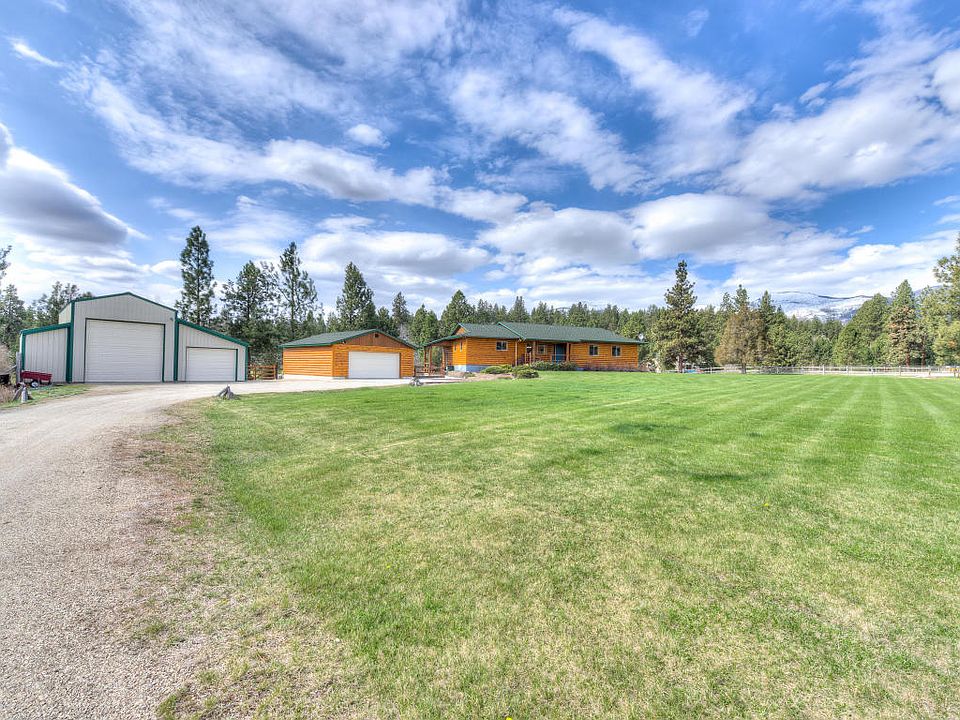Country Charmer! This custom, log sided home is sitting on 5 beautiful, irrigated acres with a bubbling creek flowing thru the entire property. The main level of the home features a vaulted living area, built in china hutch and a beautiful view overlooking the creek. Great layout in the kitchen with a butler pantry for additional storage. You have a private den or office area for additional quiet space. Three bedrooms upstairs with the master suite featuring a roll-in, tile shower and double sinks. The laundry room is off the master and very convenient. Downstairs we have additional bonus rooms, TONS of storage and a woodworking shop. The home is heated via geo-thermal which is a highly efficient, very economical and clean way to heat and cool your home. Outside we have a detached, double