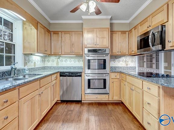Prepare to be captivated! This expansive and charming estate offers 4/5 generous bedrooms and 3.5 bathrooms with ample living space for both privacy and entertainment. The fully finished walkout basement with kitchen has tremendous diversity and could be an in-law suite with a workshop/hobby room with rollup door. Plus not one, but two garages and an additional covered parking area. And talk about ultimate outdoor living- new deck, 24X44 in ground pool, multiple covered sitting areas, and a cabana with a 3/4 bathroom all surrounded with meticulously maintained landscaping! This home along with 4.36 acres is within walking distance to Sand Mountain Park and minutes to Lake Guntersville.