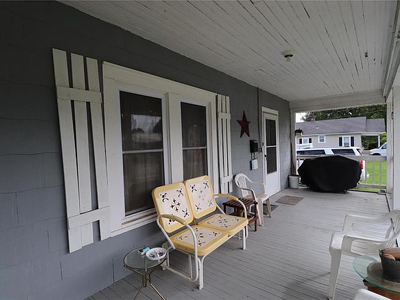 Very well taken care of 2 bedroom home. Beautiful hardwood floors. This charming home still has some of the loved characteristics of yesteryear. The wood panel doors, door knobs, arched doorways... Very large master with 2 closets and built ins. Large roomy living room, separate dining area and super cute kitchen. Home has a partial unfinished basement, with workshop type area built in for your hobbies or crafts. 3 sheds on this large .69 acre lot in town! One shed is make to be a workshop with electricity & heat. Beautiful large covered porch looks out to small park right across the street!