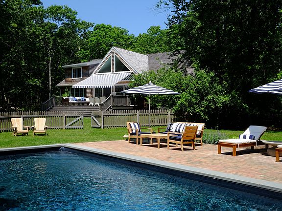 East Hampton Summer Getaway offering 5 bedroom 3.5 bath with sought after open floor plan, custom kitchen with professional appliances and gorgeous granite counters. The house is complete with wood burning fireplace, living room, formal dining and 4 season sunroom with vaulted ceilings throughout. Newly added bath, walk-in pantry and laundry room on first floor. Gorgeous baths, new office, open studio and 2 additional bedrooms on the second floor. New mahogany deck for entertaining and beautiful heated pool with blue stone coping. Secluded on 3.5 acres adjacent to town reserve. Minutes to Amagansett, Montauk, ocean beaches and East Hampton Village. FullY FINISHED basement with gym, den/media room.