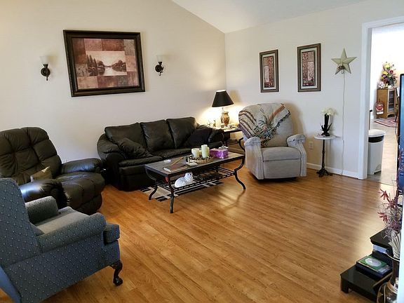 Custom built home with lots of extras. Enter into a beautiful living room with laminate floors, vaulted ceilings & remote controlled fan; oversized master bedroom with LARGE walk-in closet; 2 nice bedrooms with oversized closets & ceiling fans; Eat-in kitchen with island & custom cabinets; extra large laundry room;2 car garage with side door & pull-down attic steps to a partially floored attic with lights; extra wide driveway; deck overlooking city maintained pond.
