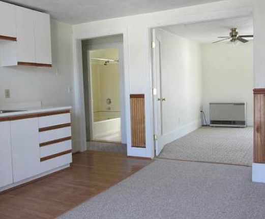 Sunny, one bedroom located on 2nd level. Open concept kitchen dining and living room with french door to bedroom.Off street parking, snow removal and lawn care included.Tenant pays utilities. (gas/propane heat)Security deposit required.Good references / OK credit.Non-smoking unit.For more information call Nancy at (603)994-3535.One year.