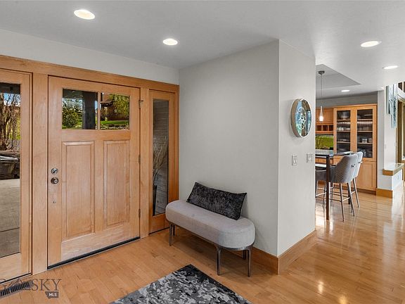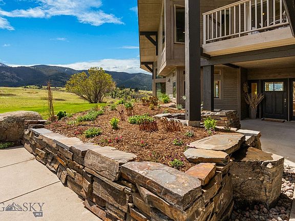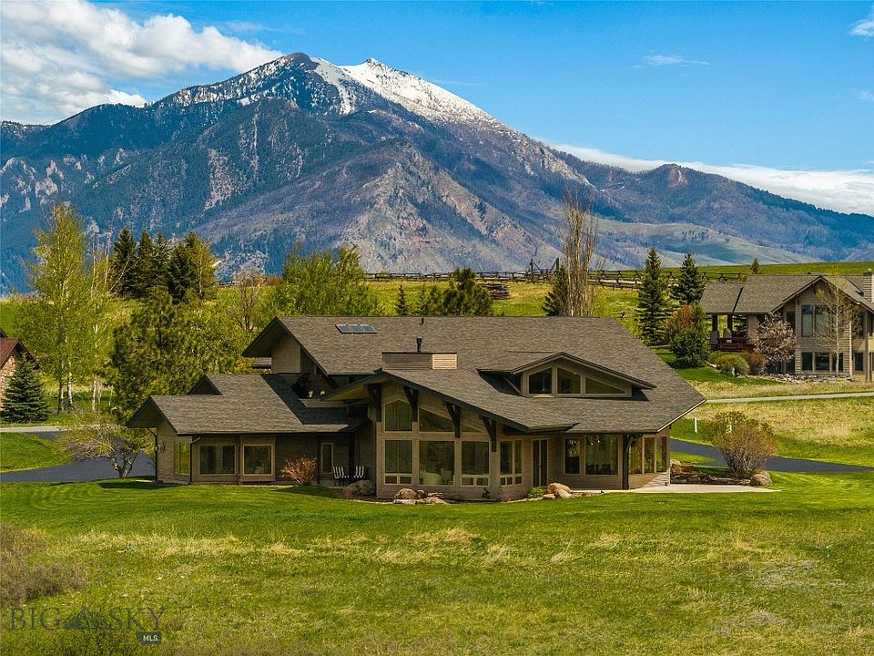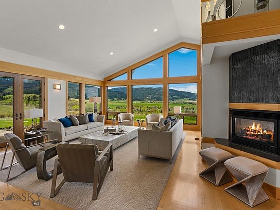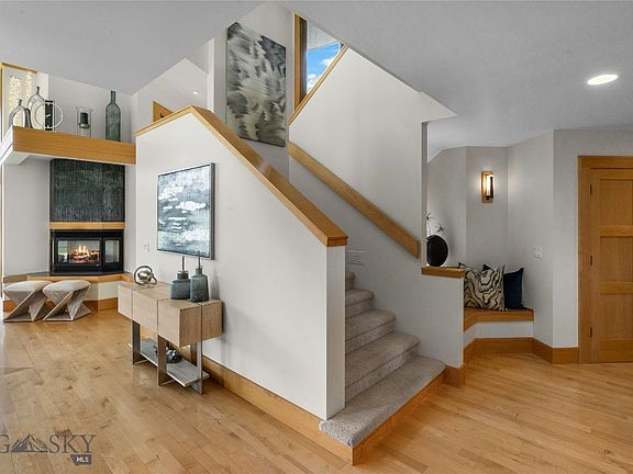 Perched atop the immaculate Triple Tree Subdivision, this architectural gem by Westering Design offers stunning morning vistas of the Spanish Peaks and Gallatin Range. A Parade home from 2003, it stands as a timeless masterpiece with its sleek lines and modern angles that capture the essence of Montana. In 2021, Sanctuary Designs assisted the meticulous updating of the home, enhancing its 5,200 square-foot open floor plan that boasts both functionality and luxury, tailored to the lot's distinctive topography. The home's earth-integrated architecture is evident as the front entry gracefully descends past the grand entry beam, inviting natural light into the spacious great room. The maple flooring and trim provide a subtle backdrop to the expansive views of Gallatin Valley and the enchanting sunsets. The foyer seamlessly transitions to various home sections, including a charming window-lined dining area ideal for gatherings. Outdoors, the south yard features an expansive concrete patio designed for alfresco dining and entertainment. Around the corner lies the semi-professional kitchen, compact yet ingeniously arranged for maximum efficiency. Equipped with Viking steel appliances, a Bosch dishwasher, and Lux Giotto polished Quartzite countertops, the kitchen exudes a contemporary flair. The central island, complete with a produce sink, is complemented by a chic bar crafted from recycled New Zealand eucalyptus wood. The sizable walk-in pantry with its ribbed glass door is a notable addition. The main floor also houses a cozy cork-floored home office with garden views, a large laundry room, a three-car garage with a 220v electric car outlet, and ample utility and storage spaces. The main floor's primary suite serves as a secluded sanctuary, featuring a raised fireplace, a comfortable sitting area, a window seat, and an extensive walk-in closet. The adjoining spa-like master bathroom is designed to elevate relaxation with its sophisticated amenities. A loft inspired media/family room hovers above the living & dining area. A built-in wet bar leads to a semi-covered upper terrace, where dark South American hardwood flooring complimented by a row of floor-level windows enhances the theme of indoor-outdoor living. Sipping coffee from this terrace is a private paradise Adjacent is three bedrooms, two bathrooms, and an extra room plumbed for second laundry. Information is deemed reliable, but not guaranteed; Buyers and buyer agent to verify all information.