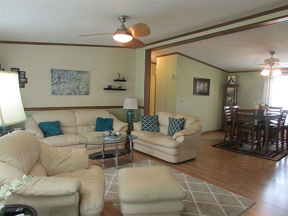 Pack your bags, this is it! Move-in ready 3 bedroom, 2 full bath home on 1.986 acres M/L. Custom built features throughout home, 2244SF with 3 car detached garage, plus outbuildings. Part of backyard fenced for children or animals to stretch their legs. 16x12 living room opens to dining room and kitchen with bar and island. 12x18 family room has a cozy gas fireplace. 16x12 room with hardwood floors and french doors built off the additional dining area. Split floor plan convenient for growing family. Master bedroom has double closets plus walk-in closet and private bath. Kitchen comes with appliances. Conveniently located between Bedford and Mitchell.Call today for a private showing.