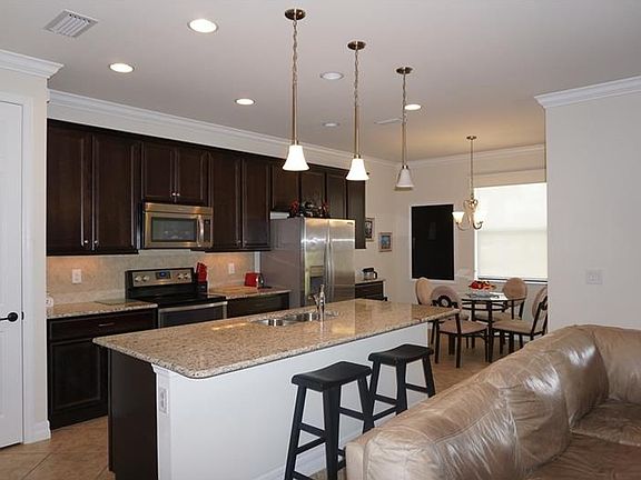 WHY BUILD NEW? $50K in UPGRADES! This beautiful, lake front, Centex Vernon Hill II model home is priced well to sell! Just the right size with 3 bedrooms, 2 baths, and an office! Gorgeous kitchen with stainless steel appliances, granite counters and wood cabinets. Crown molding in great room, and trey ceiling in the office. Tile in main areas and bedrooms are carpeted. Screened in lanai overlooking the lake. Crossing Creek is a great location, close to I75, the Creekwood dog park, hospitals, shopping, dining and gulf beaches.