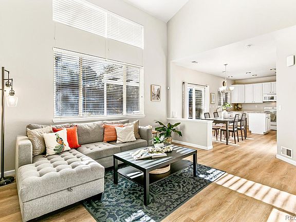 Tucked into a quiet corner of Highlands Ranch you'll love this beautifully maintained 3 bed/3 bath home. Recently upgraded with gorgeous LVT flooring throughout the main floor and bedrooms. Enter to the family room with soaring vaulted ceiling, sunlit windows, built-in cabinet, and additional under-stair storage. Continue to the tastefully designed kitchen, offering Corian countertops, a granite kitchen island, white cabinets, large pantry and a perfectly appointed space for a dining table. Sliding glass doors open to the wonderfully landscaped fenced backyard with an over-sized stamped concrete patio and recently painted pergola. The main floor also finds the laundry area and mudroom leading from the two-car garage. Upstairs features the large primary bedroom with walk-in closet and full bath offering dual sinks. You'll also find the two guest bedrooms, a full bath, and a small landing that could easily accommodate a desk or workstation. The spacious two-car garage has large built-in shelves for additional storage, and a convenient exterior door for yard access. Newer HVAC, and ceiling fans in all bedrooms. Highlands Ranch HOA boasts four Rec Centers within close proximity to the property, in addition to numerous walking paths and trails.