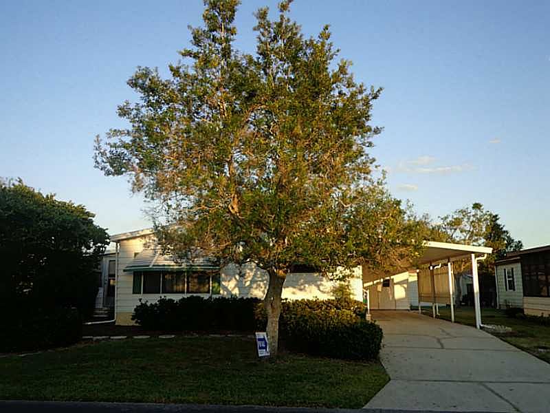 If you are looking to move to a fun and friendly community, you may want to check out this favorable home! A larger model that is wheelchair/walker accessible, with an OPEN floorplan makes this home stand out. Partially furnished, re-plumbed, freshly painted, A/C 4 years old and regularly serviced with a separate 8'x6' laundry room which includes a washer/dryer are just some more features we know you'll love. A beautiful, built-in buffet with cabinets, shelving, and counter space accents the dining area and the kitchen offers a separate small seating area to eat at or use as office space. The master bedroom is wide as well as the attached master bath which allows easy movement between spaces and furnishings. The 2nd bedroom and bath also offer a spacious layout, not to mention the Florida room which is accessible from the living room by sliding doors. The Florida room has a window A/C unit to keep cool in the heat of summer, and you can step out onto the beautifully crafted wood deck, with an open seating area and ramp that leads you down a gentle slope to the carport. Everything about this home is commodious so if convenient is what you are looking for, you don't want to miss out on seeing this model!