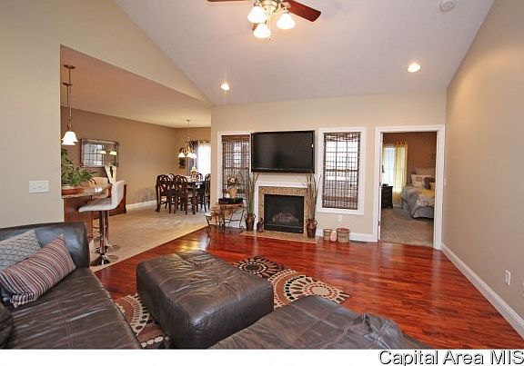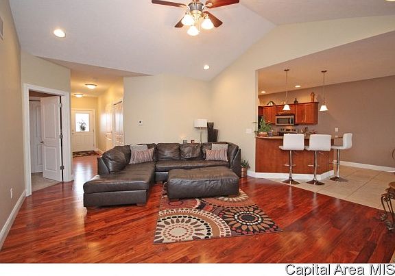 Expect to be impressed by this lovely attached home! Features a mostly finished basement, corner lot, & some great perks throughout. You'll love an open living room w/vaulted ceilings, beautiful hardwood & granite fireplace. Kitchen is boasting tile flooring, granite counters, stainless appliances, trendy fixtures & formal eat-in space. A tastefully finished basement offers a large family or rec room 2 additional bedrooms & a full bath. You'll love the space this home offers, alongside immaculate upkeep; only 8 years old & completely move in ready in Salem Estates & Pleasant Plains Schools!