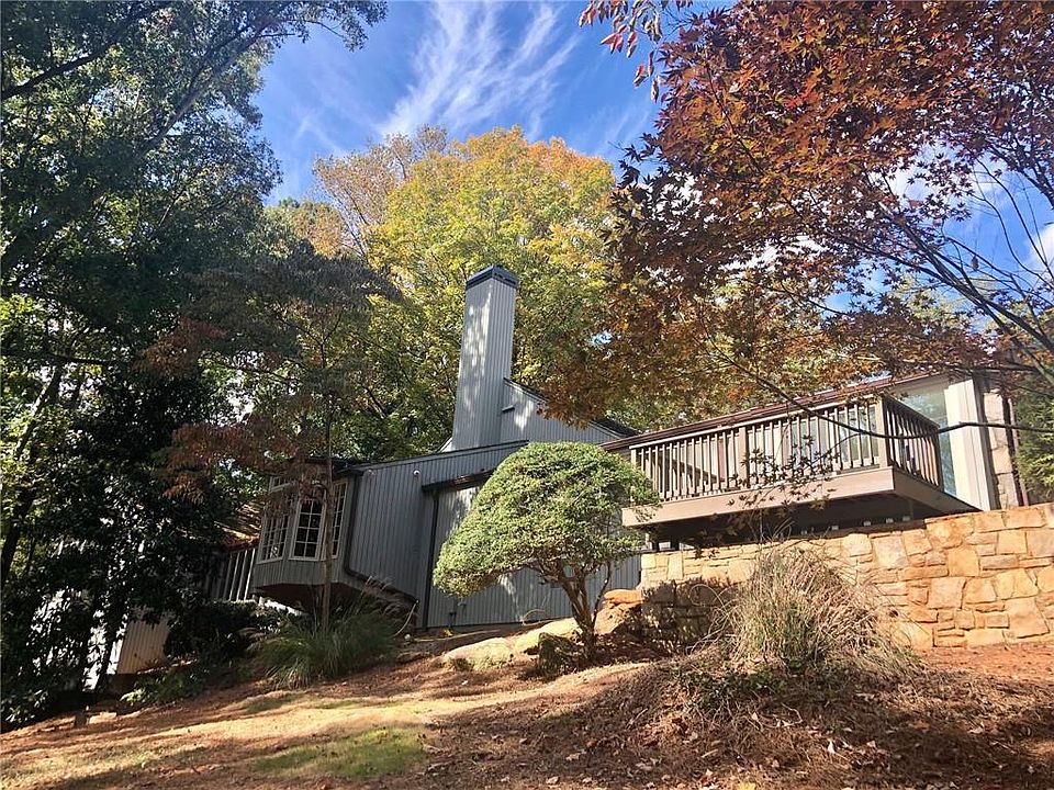 Stunning Cedar and Stone Mid Century Modern home on 2 lush acres tucked away off of Northside Drive. Newly refreshed with all new bathrooms and kitchen. Signature design aesthetic by architect Fred Bainbridge, which blends structure with nature. Natural light fills the living spaces of this 3 bed / 3 bath home. The floor plan wraps around a gorgeous redone pool. The large owners suite is truly a retreat that overlooks the pool. Seasonal views of Downtown high-rises. Very close to the Chattahoochee River's Palisades section. Two car carport and plenty of parking.