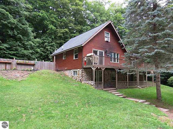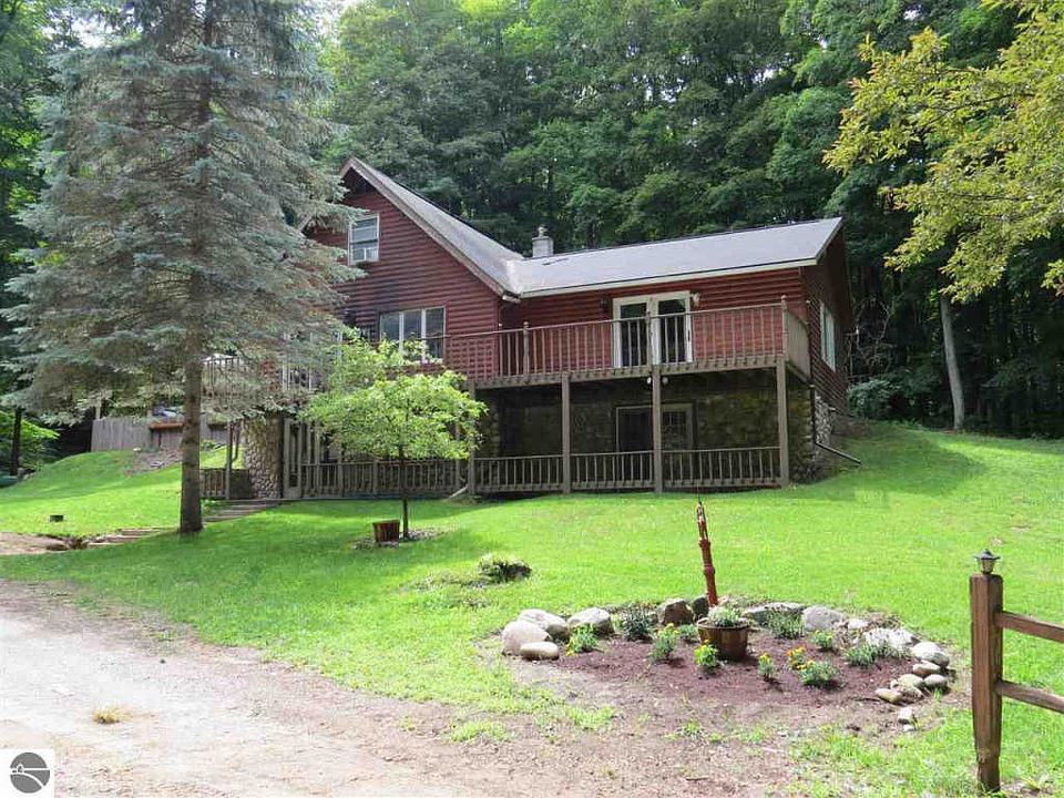 Great UP NORTH location tucked away on 6 acres and backs up to CFR property (Commercial Forest Reserve). Large living room with floor to ceiling stone fireplace. Slider doors allow quick access to the deck for views of the secluded setting. 3 beds/1 bath with the option to add a 2nd bath in the lower level. Ample storage space and don't forget about the 2.5 car garage.