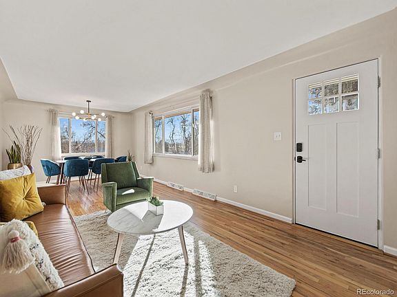 This beautiful brick home located in the Belleview Park neighborhood sits on a corner lot with amazing views! Imagine watching the snow fall as the sunsets over the mountains from your front porch or in your cozy living room. This home is tastefully updated throughout with some charming features such as the coved ceiling. There are large newer windows allowing for plenty of natural light as well as fresh paint and gleaming wood floors throughout the main level. In your beautiful new kitchen you will find a locking tile floor, quartz countertops, beautiful cabinetry and stainless steel appliances including a gas stove. Enjoy your finished basement that has 2 additional bedrooms, a full updated bathroom, family room and newer garden level windows. The large backyard will become your oasis complete with a covered patio area and TV. Need to practice your short game? Or maybe you prefer cornhole, either way you will love the raised Astroturf area designed for endless fun! A new roof and new gutters were just installed as well as a newer 6ft privacy fence with a double door gate leading to parking for your RV, boat or any other weekend toys. This home has it all including being a short walk to Belleview Park where you can ride your bike or in the winter cross country ski through 20 miles of paths that connect to the regional trail systems. Love Pickleball or Tennis? Belleview Park has both and it is right down the street! There are restaurants, Brewery's, Coffee Shops, Sprouts and a Chuze fitness nearby, all you need to do is turn the key on this one!
