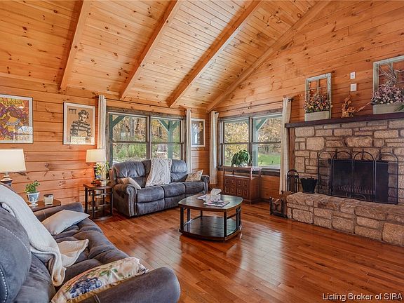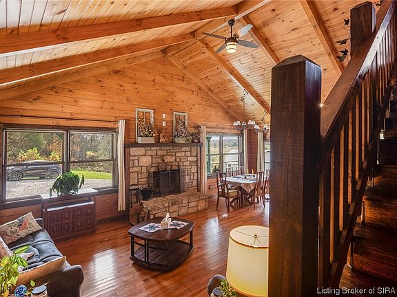 First time on the market!! This property is situated on 30 acres, offering plenty of privacy and a park-like setting. The log home has three bedrooms, providing ample living space. There are 3 full bathrooms and one-half bath, ensuring convenience for residents and guests. The open-concept design of the home is great for gatherings, providing a spacious and inviting atmosphere. A wood-burning fireplace adds warmth and character to the living space, making it cozy during colder months. There are various outdoor amenities, including a patio, a playground set, and a fire pit. These spaces are perfect for enjoying the natural surroundings and entertaining guests. There's a patio for outdoor relaxation, offering a great space for enjoying the surroundings. The three-quarter wrap-around porch offers multiple options to relax and take in the beautiful views that the property provides. The walkout basement adds additional living space and offers wonderful views. It's also plumbed for a wood-burning stove, which can provide additional heating options. The second floor includes 2 bedrooms and a loft area, which can be used for various purposes, such as an office, a reading nook, or an extra living space. The home has two chimneys, one for the existing fireplace and another for a wood-burning stove if you decide to add one in the future. This property is an ideal retreat for those seeking a secluded and spacious log home with ample outdoor and indoor amenities. Sq ft & rm sz approx.
