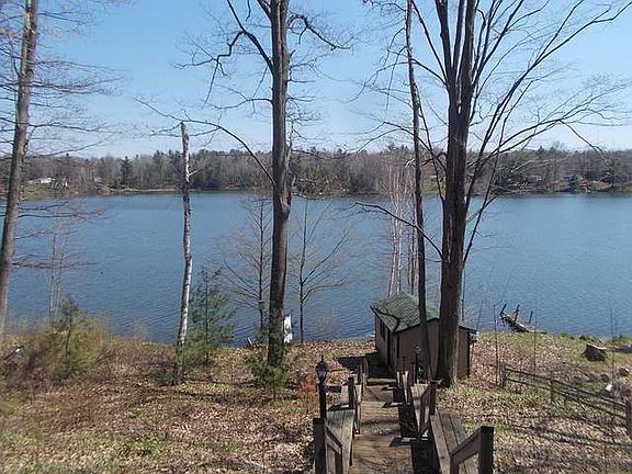 Enjoy the beautiful view from this very nice lakefront home from the covered deck on a no-wake quiet lake Kerswill. It includes an aluminum dock, 2 garages and storage barn, gas fireplace, automatic backup generator, a beautiful fireplace in the great room and a huge covered deck with a terrific view of the lake. The lake is known for good fishing and only property owners may use it. The master bedroom with handicap accessable full bath is being used as a craft room. The three lots with a small garage and huge motor home shelter across the road can be bought for $18,000. One garage has a workshop and man cave. Perfect for the people who like peace and quiet and lots of room. Stairs lead to the boat dock and boat house. A lot of house for the money.