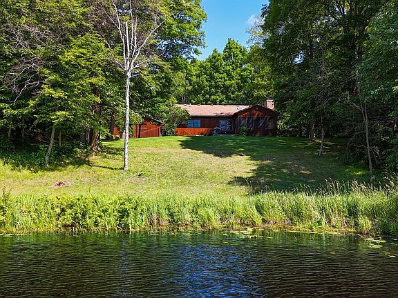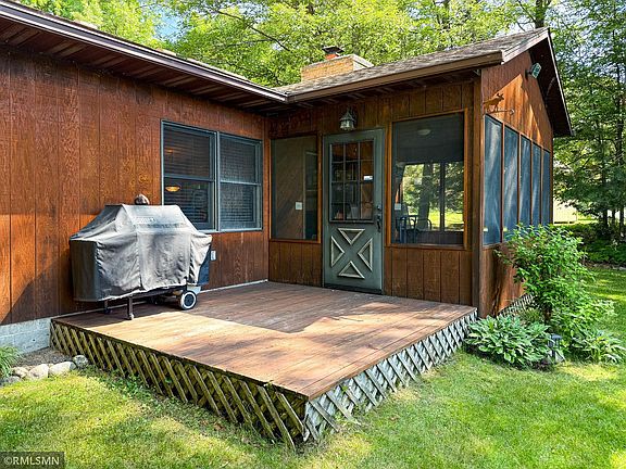 This nicely decorated 2 bedroom 1 bathroom well maintained home offers tons of natural light. The open floor plan with vaulted ceilings, skylights, and center island kitchen keeps everyone connected. The large screened porch keeps the bugs out while taking in the spectacular views of Lake Minnewawa. This is one level living at it's best! The home offers solid oak cabinets throughout with lots of storage space. The slab off peak heating and Kozy heat wood burning fireplace keeps it toasty warm in the winter. The property includes a 24'x24' garage, 12'x16' Old Hickory storage shed, and a Floe dock with Floe table & chairs. This home is being sold turnkey including bedding, dishes, and silverware. Just bring your clothes and food and move in! There is a shared boat launch on the channel. Easy access for you to put boats and toys in and out:) Best of all it is waterfront property without the high lakeshore taxes, and the dock remains in the water year-round!