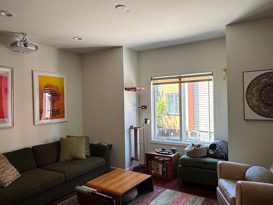 1,591 sq feet. 3+ bedroom, 2 bath, 3-story townhome. Plus room is bedroom-sized, but no closet perfect for an office or dining room. Includes a new fridge and washer/ dryer. 1 car garage. Shared back yard. Very family friendly. The house will be available June 01. Renter covers utilities (we have solar so electric is nearly $0). What else to know: - HVAC with filtered outdoor air intake for cooling - Solar - 240V outlet in garage for EV charging - Shared backyard with grill and grow beds - Furniture available for sale or partial furnish - One block from Telegraph Ave (Poppy's bagels, Rose's taproom, Forma Bakery, Burdell- rated best restaurant in America, Pizzaiolo, Korea town !) - Permit and meter free street parking - 12 min walk to MacArthur BART - 1.5 miles from downtown Berkeley - 1 mile from College Ave - 1 mile from Piedmont Ave - 1.5 miles from downtown Oakland - 15 min to downtown SF by car - 18 min to downtown SF by train (excluding walk) - 10 min drive to hikes in the Oakland hills Rent does not include utilities. No smoking. Looking for a 1 year lease.