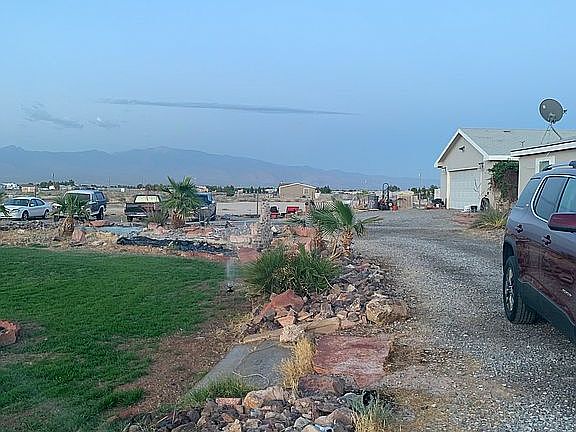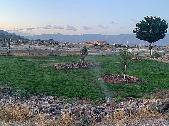 This is a beautiful acre parcel at the outer edge of the neighborhood with fantastic mountain views . There are four liberally sized bedrooms and three full baths . Primary suite has large walk-in closet and big oval tub . Great room large enough for entertaining the whole family, with dining room adjacent . Kitchen has nice sized island and stone counter tops . There is a second living room for additional entertaining space or just relaxing . The separate laundry room exits to the breeze way between this home and the two car garage . The property is completely fenced with it's own private well . It has a circular driveway in the front with room for RV parking . Huge back yard with covered patio , bring all your TOYS and enjoy the freedom of living in the wide open spaces .